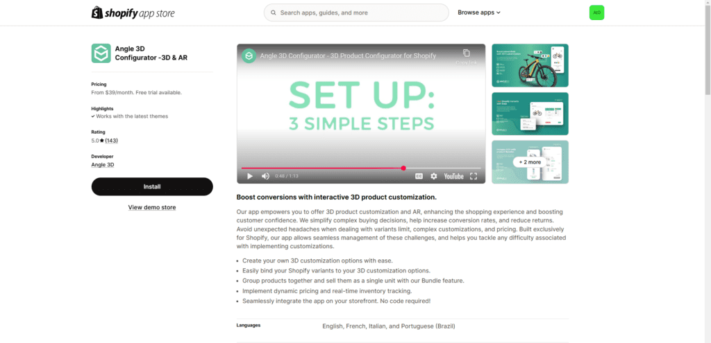 3D Product Customizer transforms the online shopping experience by offering interactive 3D product customization and augmented reality (AR) capabilities for Shopify stores. This innovative app helps merchants overcome variant limitations, simplify complex customizations, and implement dynamic pricing while boosting customer confidence and reducing returns.