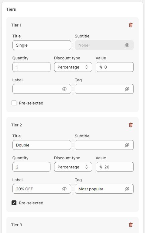 Repeat the process with higher tiers to complete your hierarchy for Shopify tiered pricing.