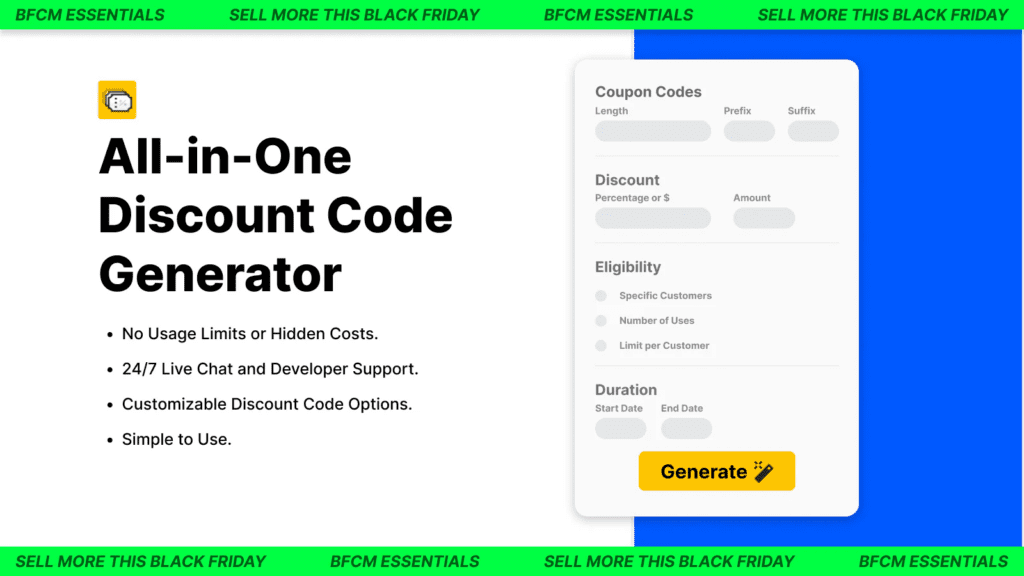 Besides producing discount codes for regular promotional campaigns, it also benefits your loyalty program. Loyal customers should receive unique codes, especially to encourage them to become your partners and affiliates for more robust store growth.
