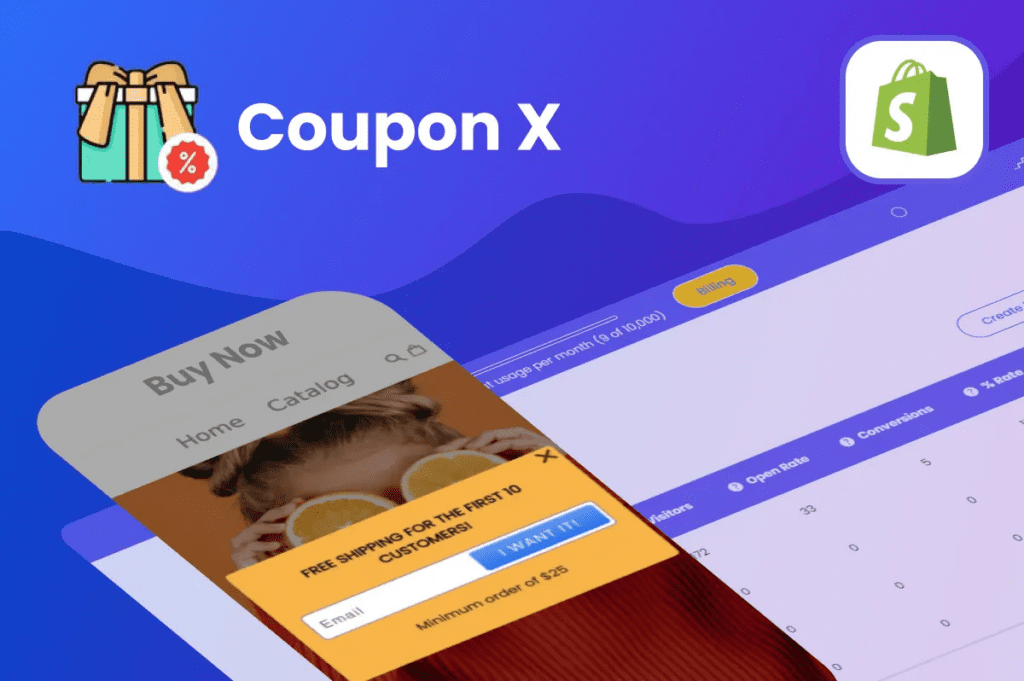 Similar to Coupon K, this Shopify discount code app is another option for generating and monitoring discount offers. Coupon X is known for enabling diverse discount types, including discount codes, bulk discounts, flat discounts, free shipping, etc.
