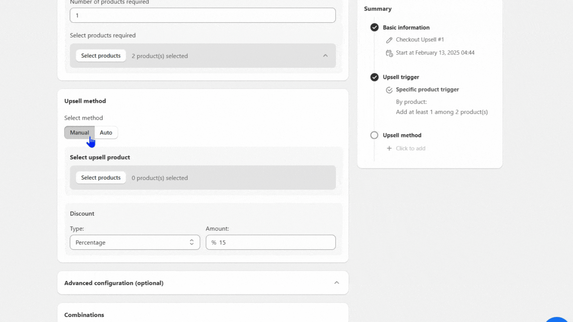 – Manual: Simply handpick the upsell products yourself without switching to any other app—everything is managed directly within BOGOS.