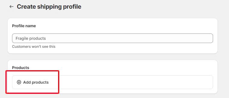 Step 3: Add a title for your shipping profile and products that you want to apply free shipping discounts to