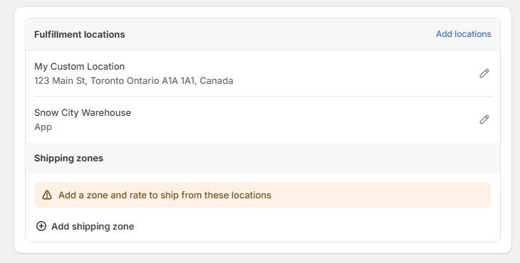 Step 4: Configure “Fulfillment Locations” and “Shipping Zones”