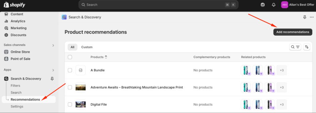 Step 1: Go to Search & Discovery > Recommendations, click Add Recommendations, and select a product. similar items, and then adjust settings if needed.