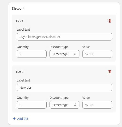 In this part, you can create a different discount for each tier, so the more they buy, the bigger the discount they will receive.