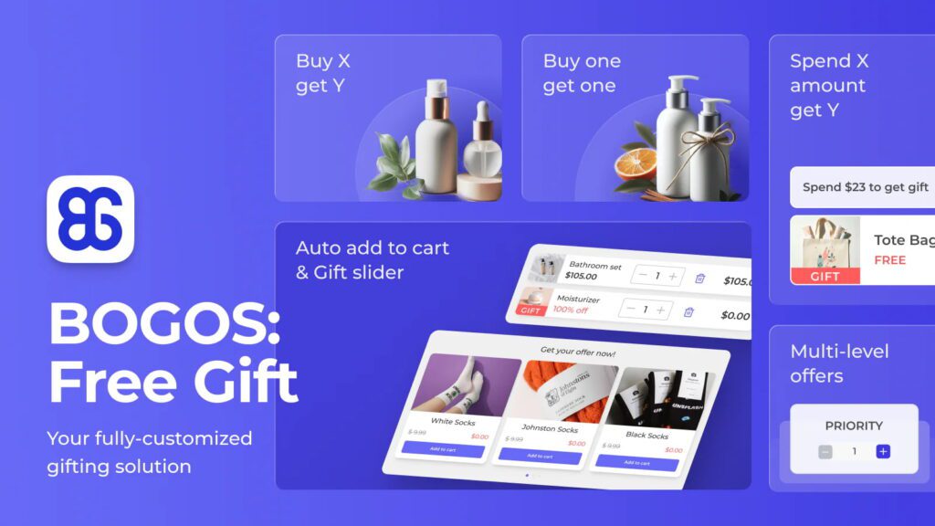 BOGOS is an all-in-one Shopify promotion app that allows customers to create not only a Shopify mix-and-match bundle but also other popular promotions like BOGO, Buy X Get Y, Quantity Breaks