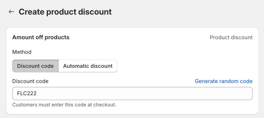 Step 3: Choose the discount code method. Enter your desired code or generate it randomly.